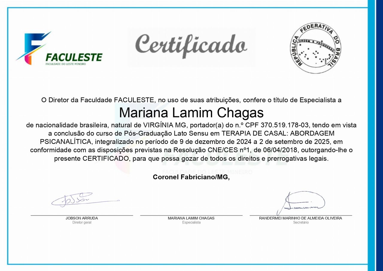 A Mariana é uma profissional competente, humana, imparcial, com escuta acolhedora e empática. Amo acompanhá-la nas redes sociais, admiro seus posicionamentos, sua sinceridade, seus textos inteligentes e sua incrível capacidade de ressignificar qualquer sofrimento. Sou mto grata por tudo!